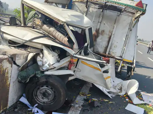 एक्सप्रेसवे पर खड़े ट्रक से टकराई रोडवेज बस 31 घायल