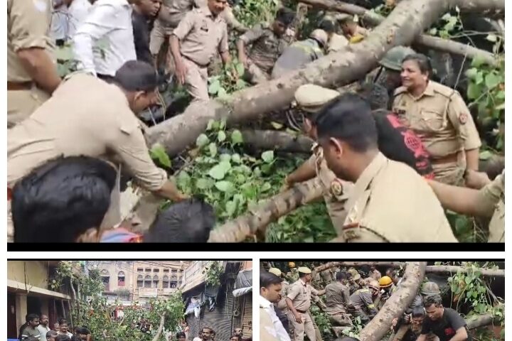 कैसरबाग में मछलीमंडी पर एक विशालकाय पीपल का पेड़ गिर गया हादसे में एक की मौत चार लोग घायल हो गए घटना की जानकारी दमकल…