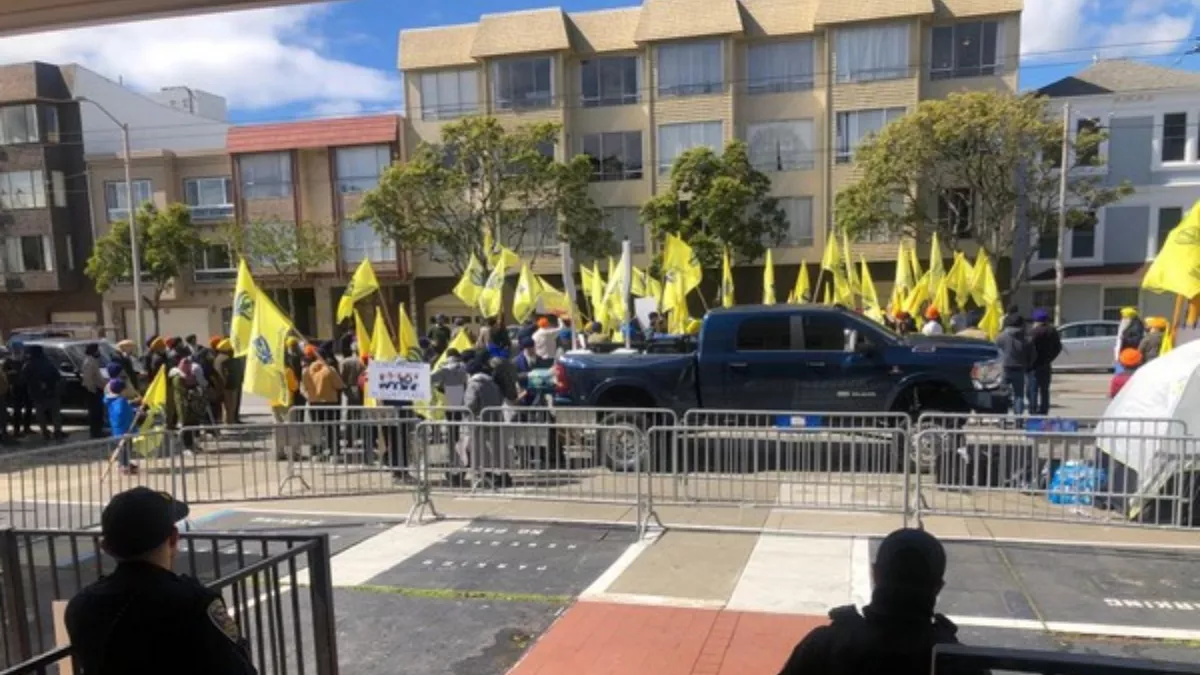 प्रदर्शनकारियों में सभी उम्र के पगड़ीधारी पुरुष शामिल थे जिन्होंने खालिस्तान समर्थक के नारे लगाए। वे खाड़ी क्षेत्र के विभिन्न हिस्सों से आए थे।
