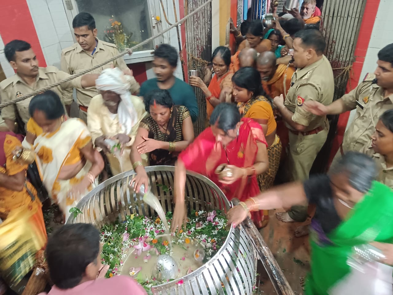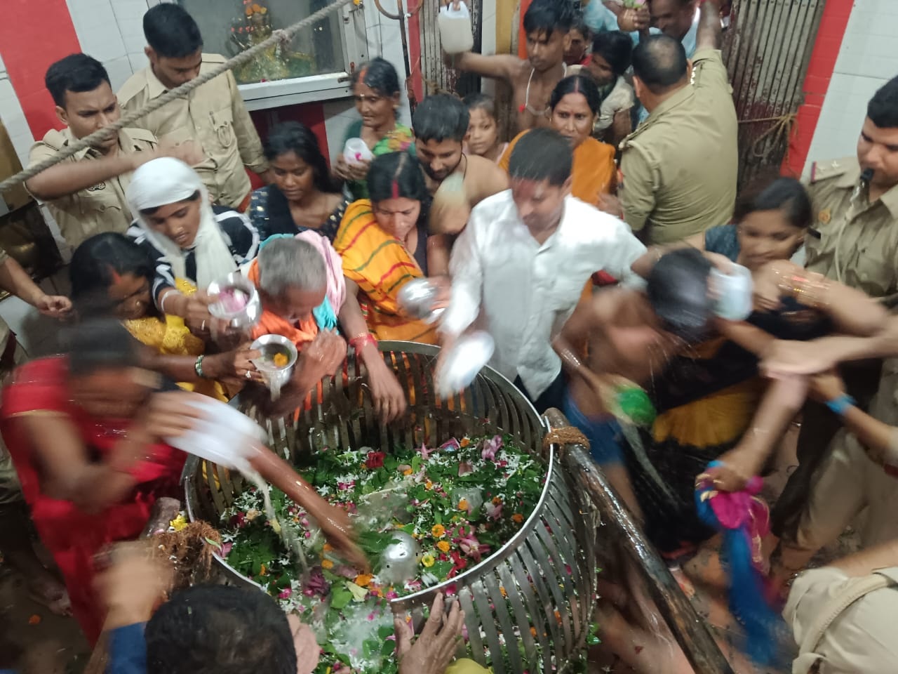 अयोध्या में नागेश्वर नाथ में जलाभिषेक के लिए जलाभिषेक के लिए श्रद्धालुओं की भीड़ उमड़ आई।