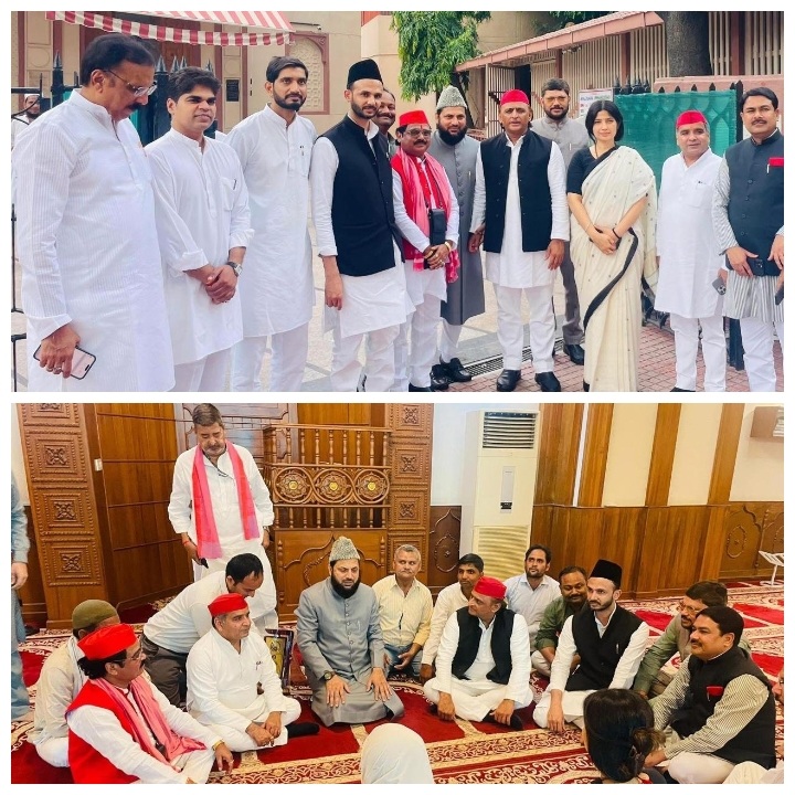 लखनऊ ; समाजवादी पार्टी (सपा) के मुखिया अखिलेश यादव के दिल्ली में संसद भवन के पास स्थित मस्जिद में कथित तौर पर बैठक करने पर भाजपा ने सवाल उठाए भाजपा अल्पसंख्यक मोर्चा ने गंभीर आरोप लगाए साथ ही कहा कि अखिलेश ने मस्जिद को सपा का दफ्तर बना दिया, डिप्टी सीएम ने पलटवार किया दिल्ली में संसद मार्ग स्थित एक मस्जिद के अंदर कथित तौर पर हुई बैठक पर अखिलेश यादव ने बुधवार को कहा कि आस्था जोड़ती है और जो आस्था जोड़ने का काम करती हम उसके साथ हैं। भाजपा को यही तकलीफ है कि कोई जुड़े नहीं भाजपा लोगों में दूरियां देखना चाहती भाजपा चाहती है कि लोग एकजुट न हो हमारी सभी धर्मों में आस्था है। भाजपा को तकलीफ है तो हम क्या करें भाजपा को आप सब जानते हैं, भाजपा का हथियार ही धर्म है। वहीं, अखिलेश यादव द्वारा कथित तौर पर मस्जिद के अंदर बैठक करने पर समाजवादी पार्टी के सांसद राजीव राय ने कहा कि “क्या अब हमें मंदिर और मस्जिद जाने के लिए भाजपा से लाइसेंस लेना होगा?…”