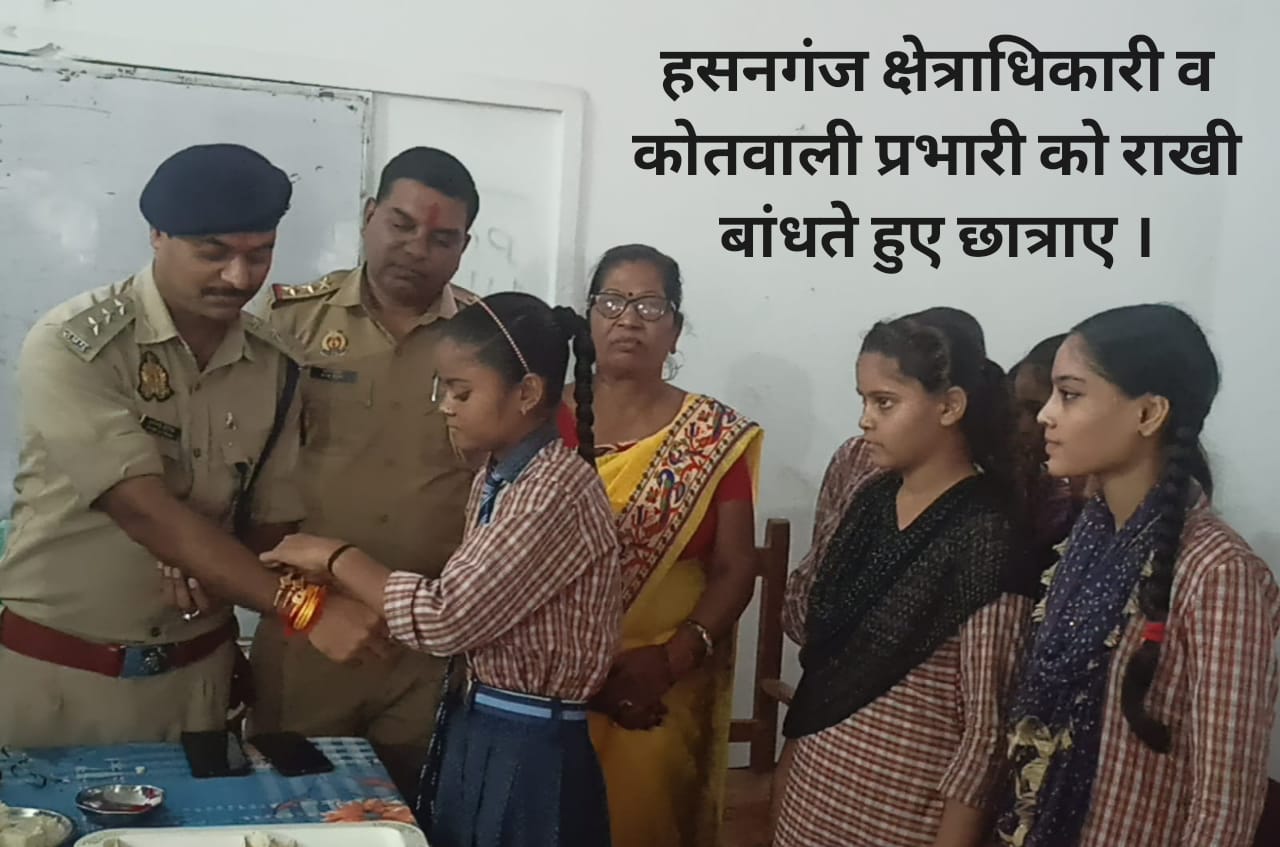 हसनगंज (उन्नाव) – कोतवाली क्षेत्र हसनगंज में स्थित सभाकुमारी इंटरकॉलेज में क्षेत्राधिकारी अरविंद कुमार चौरसिया एवं कोतवाली प्रभारी शरद कुमार ने छात्राओं से राखी बंधवाई।