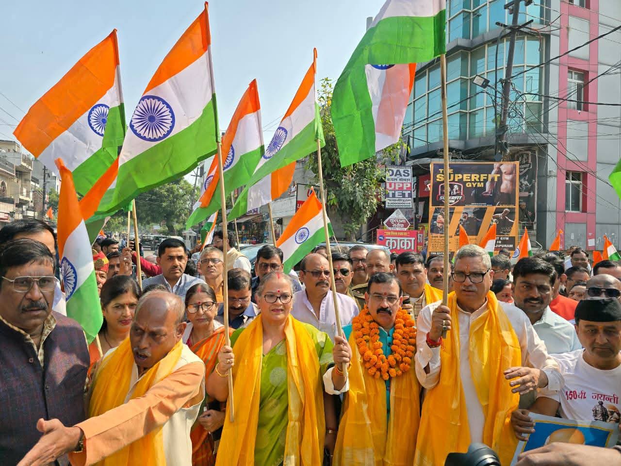 लौहपुरुष सरदार वल्लभ भाई पटेल की 150वीं जयंती के अवसर पर पश्चिम विधानसभा में विशाल पदयात्रा का आयोजन प्रातः 10:00 बजे से सत्संग पार्क, रूपम टेलर चौराहा से शुरू होकर मसानी देवी मंदिर मातादीन रोड,एवं बड़ा चौराहा सआदतगंज होते हुए बालागंज चौराहे पर समापन किया गया। इस अवसर पर मुख्य अतिथि के रूप में उपस्थित रहे भाजपा के वरिष्ठ नेता आदरणीय डॉ.नीरज सिंह