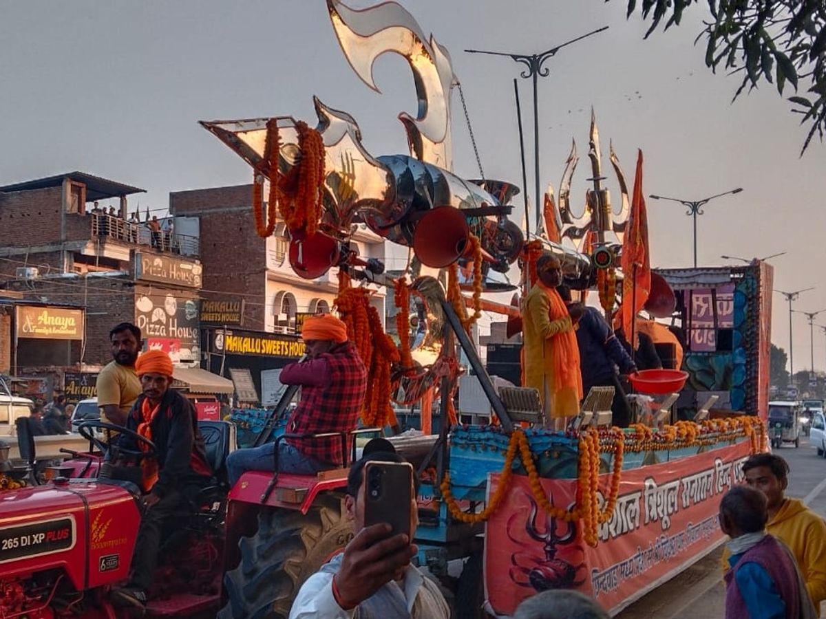 छिंदवाड़ा से चलकर विशाल त्रिशूल यात्रा रामनगरी पहुंची यहां बीकापुर में जगह-जगह फूल बरसाकर भव्य स्वागत किया गया