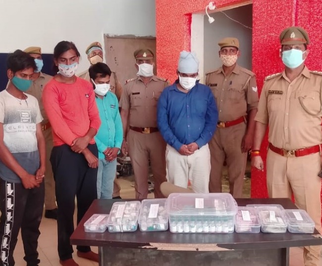 पुलिस ने ऐसे बिछाया जाल, सरगना की तलाश में दबिश : एडीसीपी मध्य ने बताया कि मुखबिर की सूचना पर पुलिस ने गिरोह के सप्लायर कौशल का मोबाइल नंबर जुटाया। इसके बाद उससे बात शुरू की। सर्विलांस और मानकनगर पुलिस टीम लगाई गई। कौशल से छह इंजेक्शन की बात की गई। उसने 20 हजार रुपये में एक इंजेक्शन देने की बात कही सौदा 15 हजार में तय हुआ। इसके बाद डिलीवरी मंगाई गई। कनौसी पुल के पास कौशल बाइक से पहुंचा। उसने इंजेक्शन निकाल कर सादे कपड़े में तैनात पुलिस कर्मी को दिए। इसके बाद टीम ने दबोच लिया। उसकी निशान देही पर विकास दुबे और अन्य को पकड़ा गया। इंजेक्शन में बंग्लूरू की मायलांन लैबोरेट्री का स्टीकर चिपका हुआ है। गिरोह का सरगना रितांशु मौर्या निवासी बाराबंकी है। उसकी तलाश में टीमें दबिश दे रही हैं।